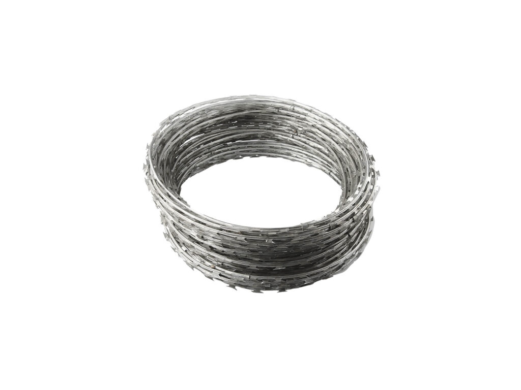 Concertina razor or Barbed wire provides additional physical security to the fence line and is also a psychological and visual deterrent for any potential thieves, trespassers, or vandals. In addition, the multiple blades on the razor wire are also designed to prevent anyone from attempting to climb the fence.